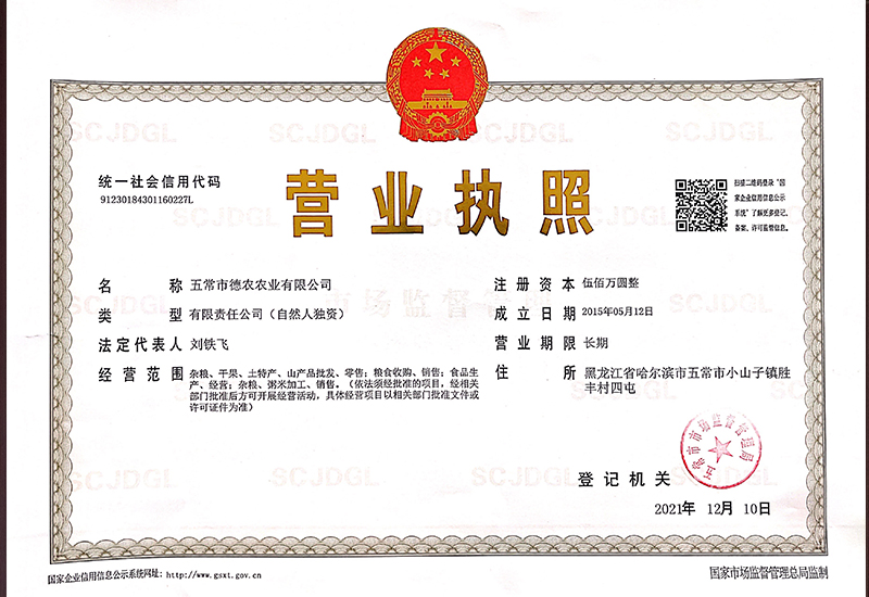五常市小山子镇 · 农业有限公司 · CHERISH THE GIFTS OF NATURE 珍惜自然恩赐 您现在的位置:网站首页 > 关于我们 > 资质荣誉 【 公司简介 】 【 领导致辞 】 【 资质荣誉 】 【 企业文化 】 营业执照副本 曾获得中国粮食行业协会放心米 曾获得上海粮油精品展示会产品金奖 曾获得农业产业化省级重点龙头企业 第八届中国浙江农业博览会金奖农产品 曾获得年度重合同守信用单位 共7条记录 当前为第1页/共2页上一页12下一页